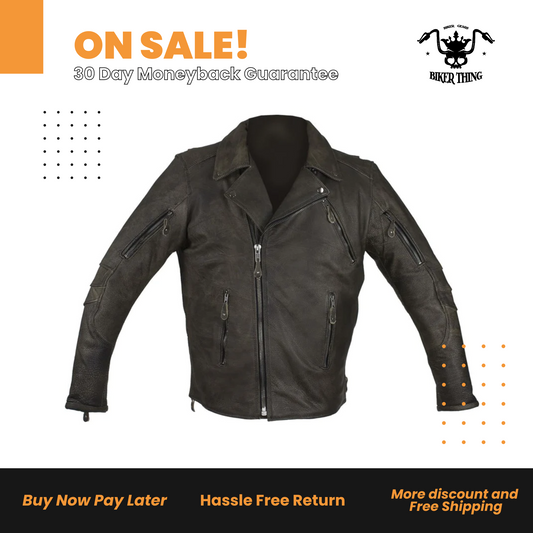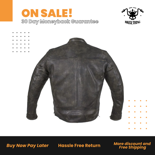Distressed Brown Racer Jacket with Concealed Carry Pockets