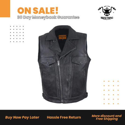 Mens Leather Motorcycle Vest With Two Deep Gun Pockets