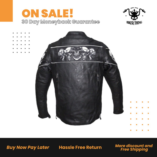 Men's Leather Concealed Carry Racing Jacket W/ Reflective Skulls