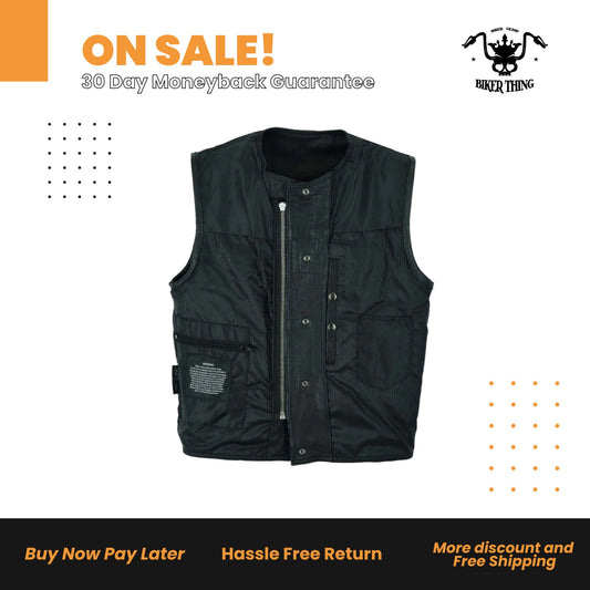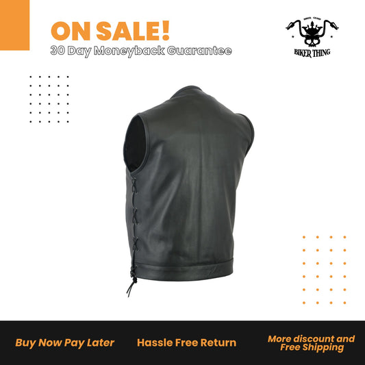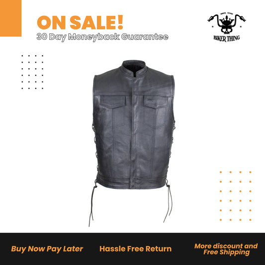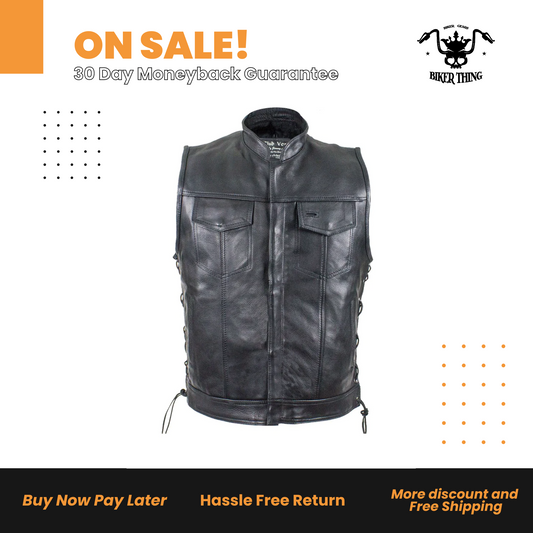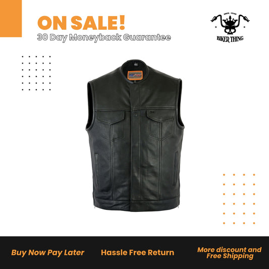 Mens Motorcycle Collarless CLUB VEST® with Black Liner & Zipper Front Closure