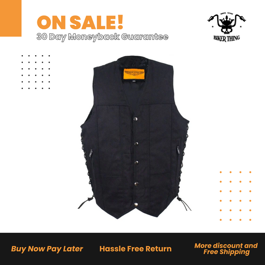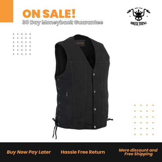 Men’s Black Denim Motorcycle Vest with Gun Pocket