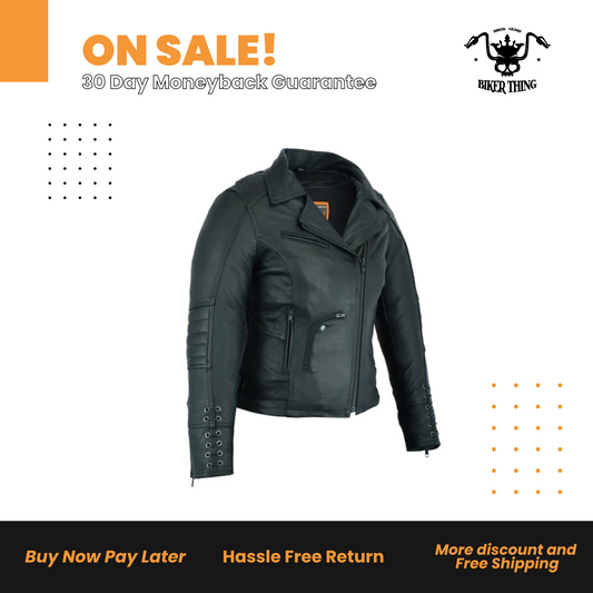 DS850 WOMEN'S CLASSIC PLAIN SIDE FITTED M/C STYLE JACKET