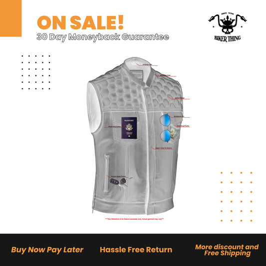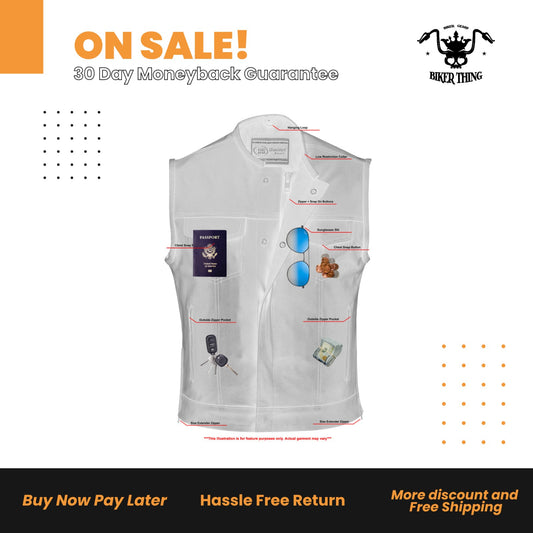Mens Motorcycle Collarless CLUB VEST® with Black Liner & Zipper Front Closure
