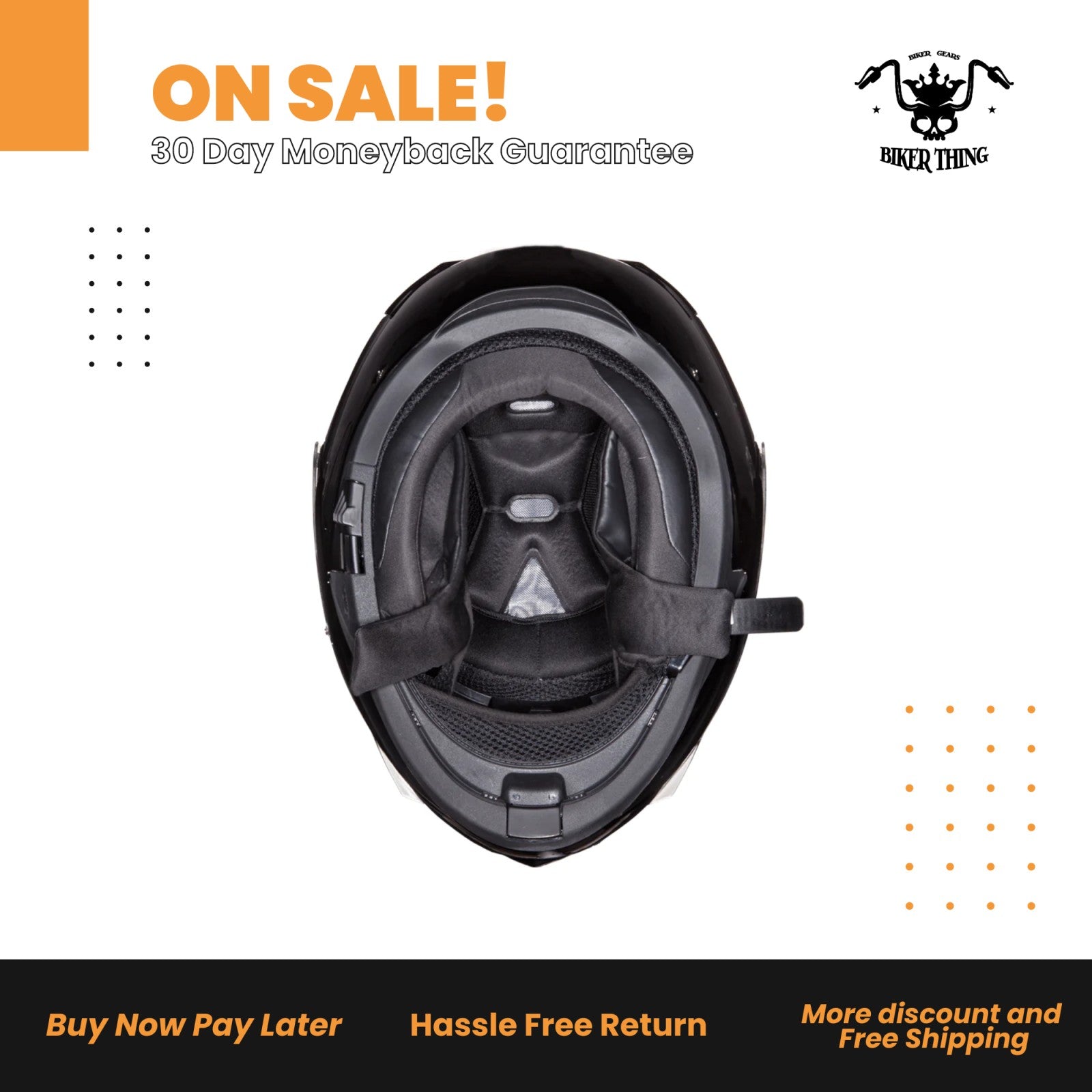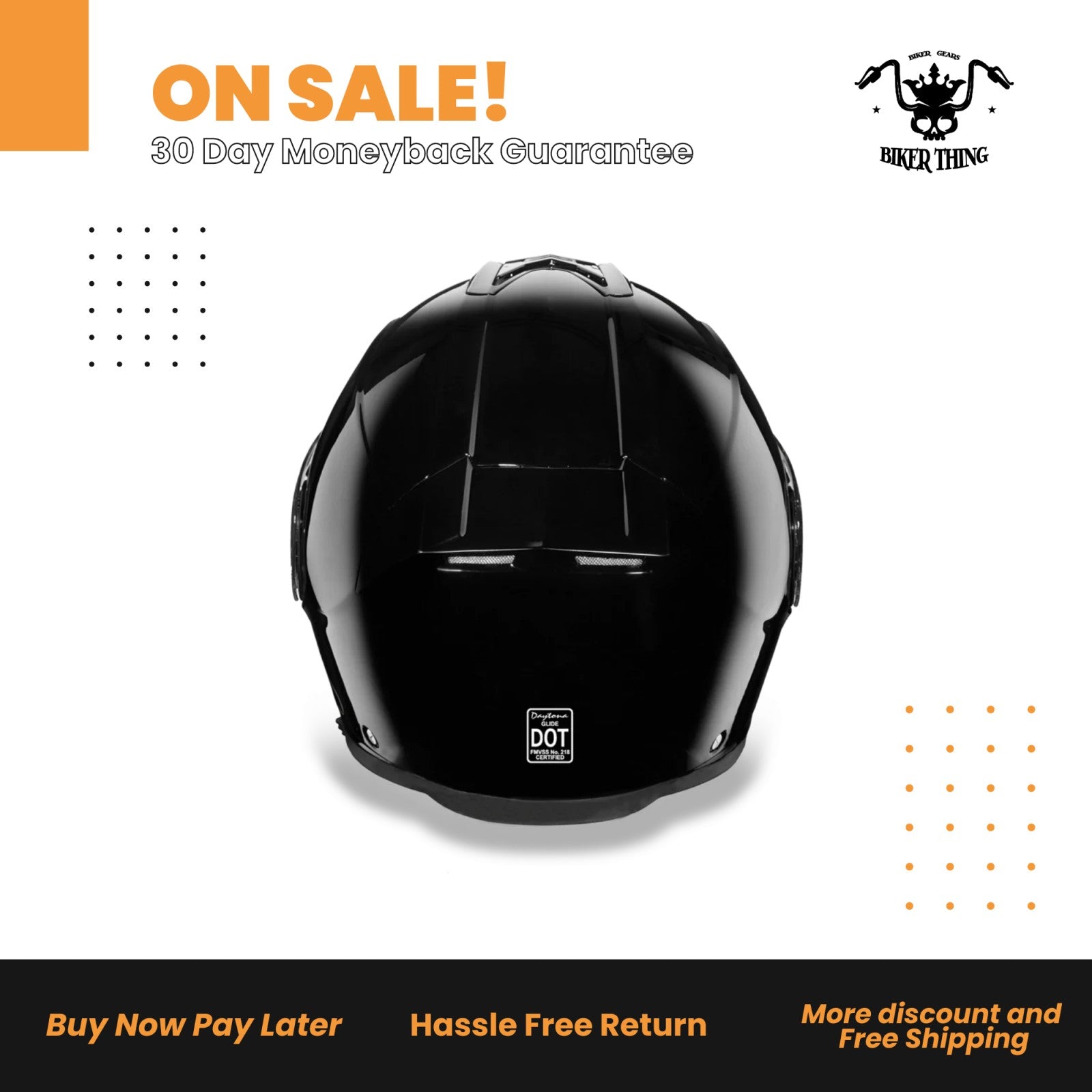 Our Daytona Glide Modular Helmet, With Inner Anti-Scratch Retractable Smoke Shield, In A Hi-Gloss Black, Meets And Exceeds D.O.T. FMVSS 218 Standards. With 2 Different Shell Sizes, You're Sure to Get That Proportionate Fit!! This Modular Helmet Comes In A Clear Lacquer Finish. Also Available in Soft Touch Dull Black And Hi-Gloss White. Custom Colors: Black Cherry Metallic, Gun Metal Grey Metallic, And Silver Metallic. Features A Dual Shield System; Outer Anti-Scratch, Pinlock 30 Fitted Clear Shield, And Inner Anti-Scratch Retractable Smoke Shield. Also Has A Quick Release Lock Retention System; One Finger Release Lever For Easy Detachment, Adjustable Chin And Forehead Ventilation, And A Removable, Hand Washable Interior (Moisture Wicking Fabric). Bluetooth Ready. Free Head Wrap And Draw String Bag Included. Sizes Range From XS-4XL.