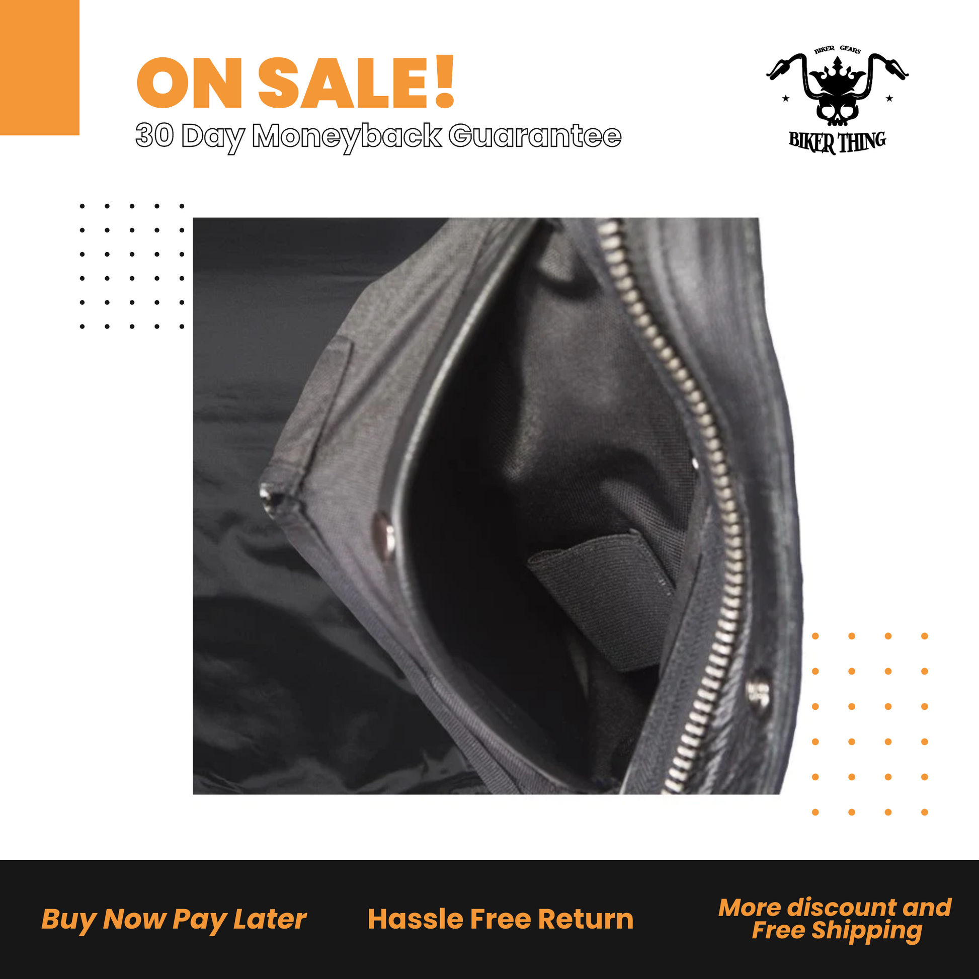 Dream Apparel understands the value of freedom, comfort, and personal protection. That's why we've made this genuine naked cowhide leather vest with two deep concealed gun pockets inside with button snaps, an inside slip pocket, and an inside zippered pocket. You're going to love the fit and feel of a premium cowhide leather club vest with a racing style collar, soft leather trim around the neck and arms, and a zippered front closure with button snaps. Make it truly your own by sewing any patches or embroidery onto the one-piece back panel. The two roomy slip pockets on the waist and two breast pockets with button-down flaps give you all the room you need for a days ride and will have you ready for whatever adventures await.