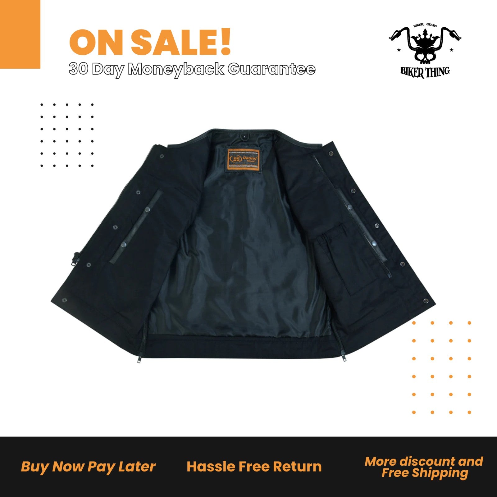 Find your men's gun pocket vest with a black metal zipper from Daniel Smart Manufacturing.